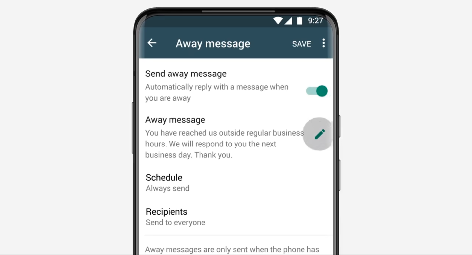 - Go to Settings → Business Tools → Away Message