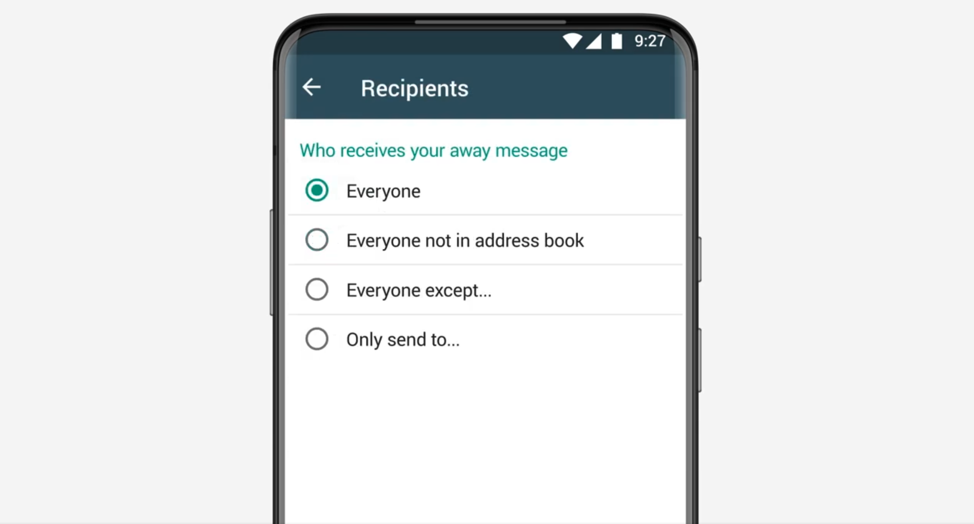 Example: “Thanks for reaching out! Our team will get back to you shortly.” - Choose recipients (everyone or specific contacts)